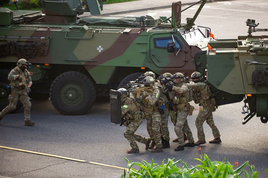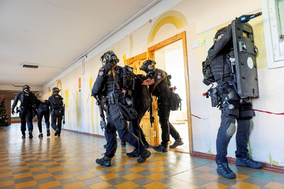 Three Latvian special operation units took part in the exercise: State Police Counterterrorism Unit OMEGA, NAF Special Task Unit and State Border Guard Special Operations Service "Sigma". The victims and hostages, meanwhile, were played by cadets of the State Border Guard College.